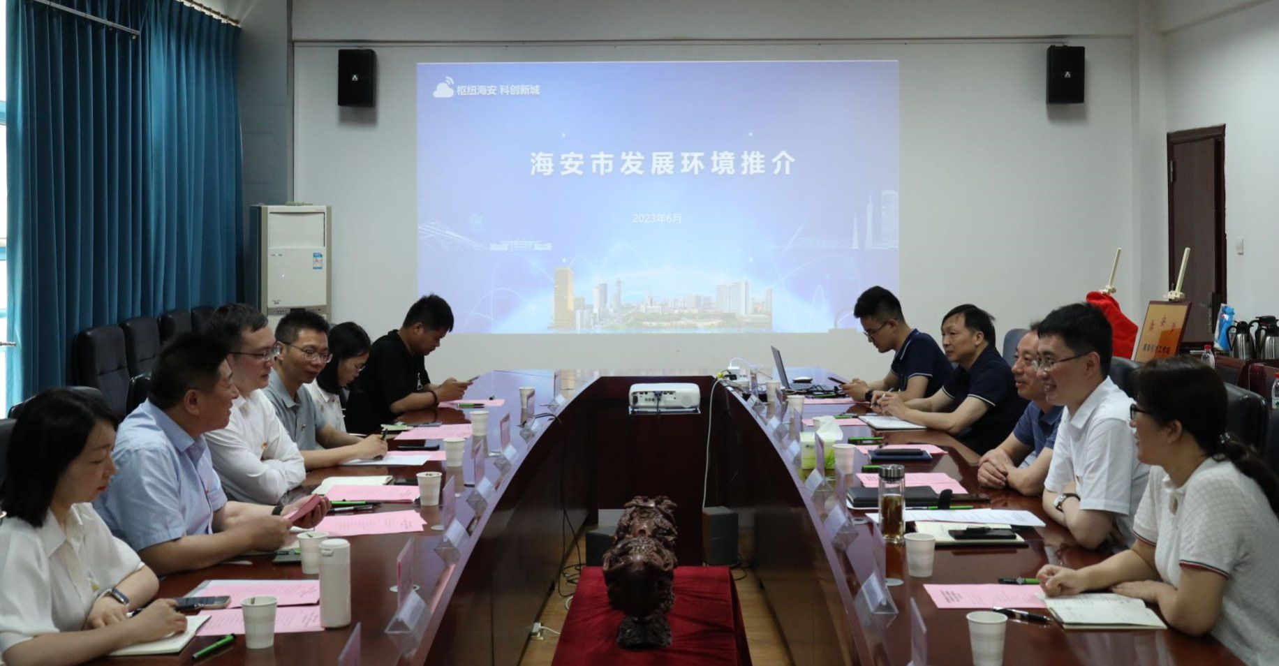 会议伊始,田永超代表学院对海安市人社局及优质企业一行的来访表示热烈欢迎,并详细介绍了学校以及学院的发展历程、学科建设、人才培养质量、科学研究成果等方面内容。双方共同观看了《海安城市及人才宣传片》及《奈飞工厂