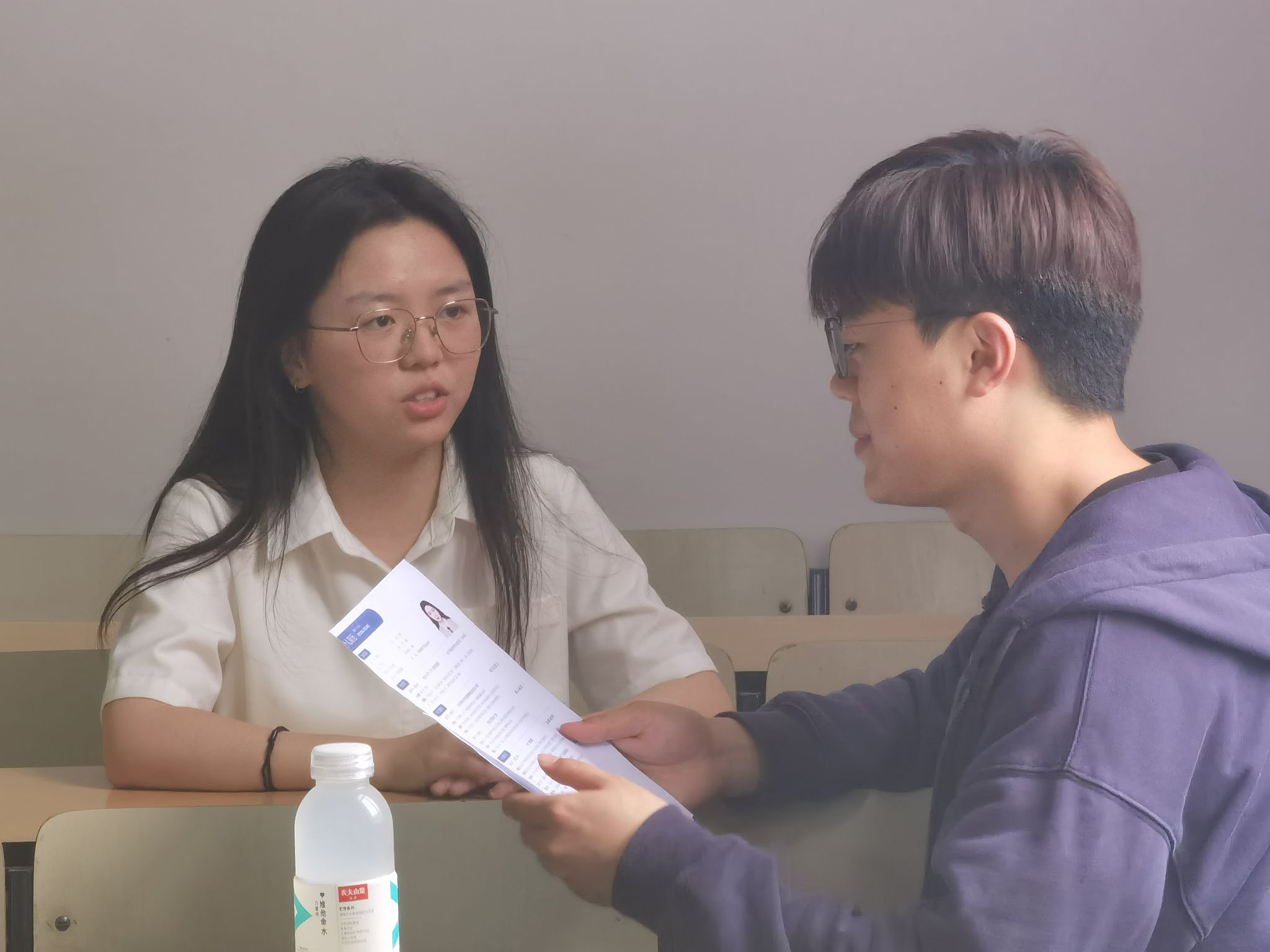 随后,校园招聘经理王芊惠现场指导学生进行简历修改;交付总监张诚、项目经理王雨,针对求职学生的岗位投递差异,精准有序进行了“面试模拟”,进而助力学生在实际体验中提升面试经验。