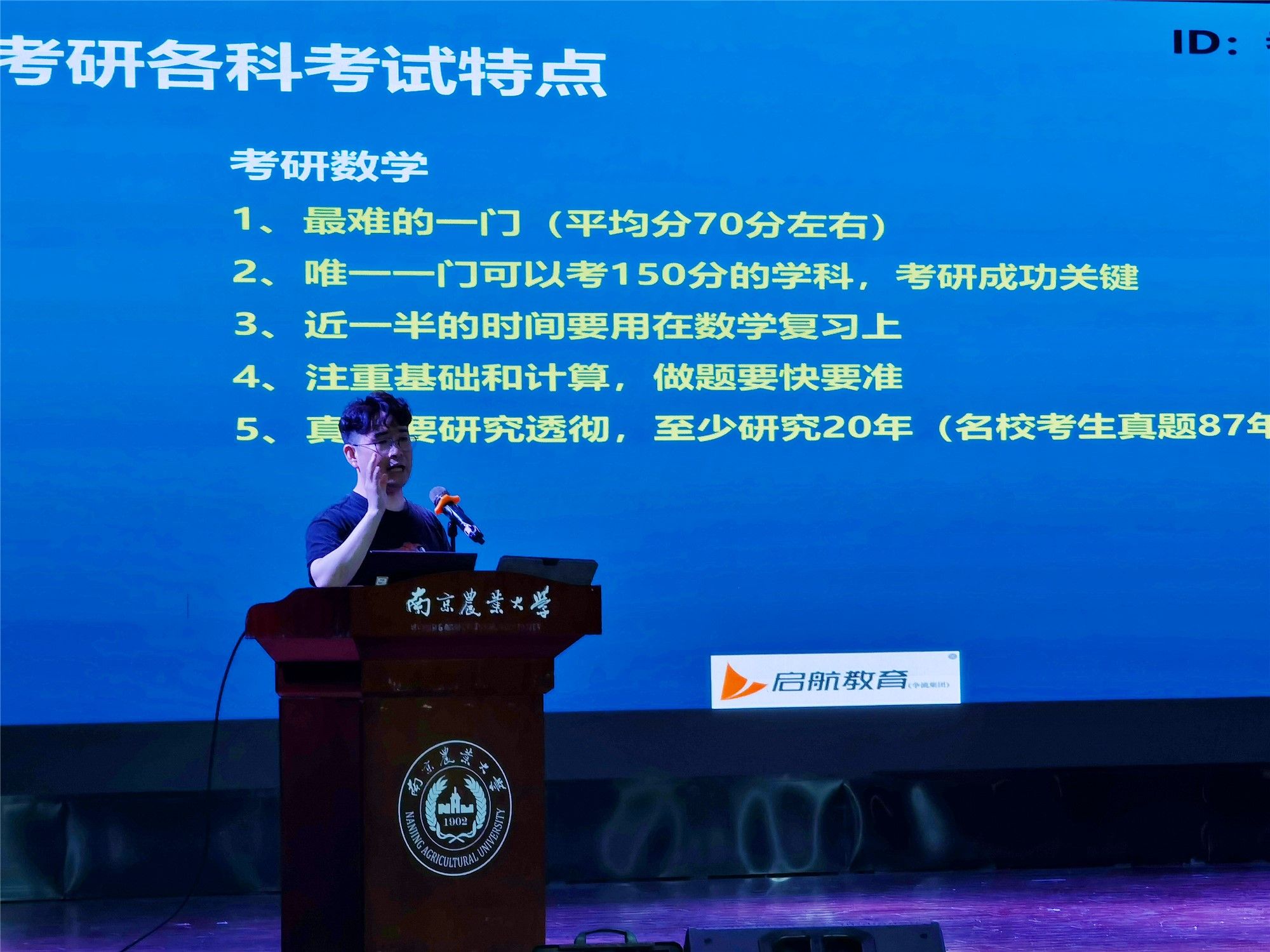 大二学生在“考研启蒙”阶段理性评估考研难度与风险。随后,他就报考方向、备考计划、复习方法等方面进行了技巧分享。最后,他结合政治、英语、数学及专业科目的考试内容、重点和难点,逐科进行了全方面的备考指导。