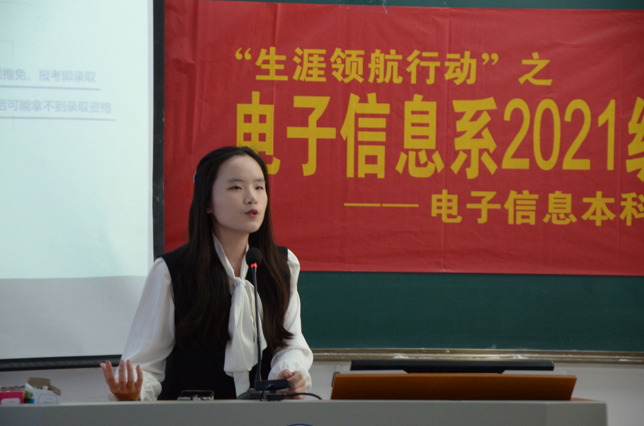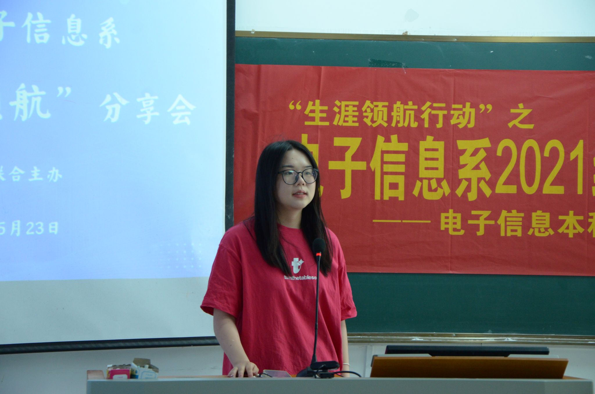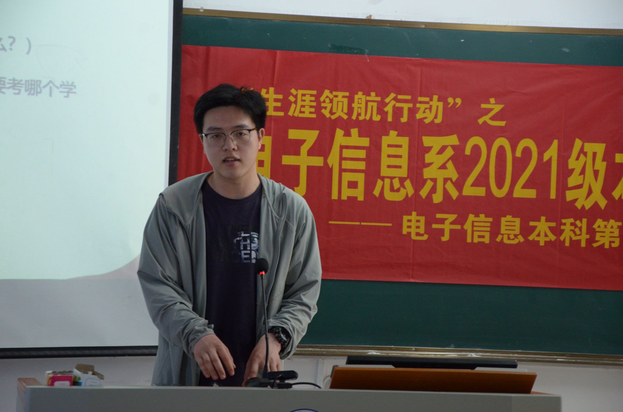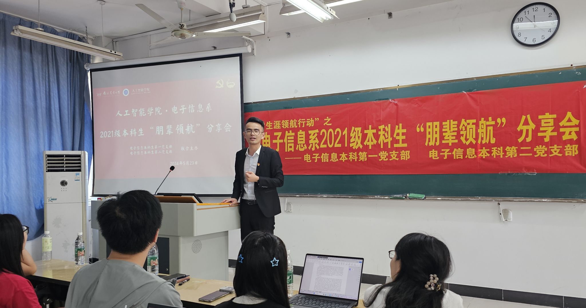 5月23日上午,“生涯领航行动”之2021级本科生“朋辈领航”分享会于汇贤楼C201教室成功举办,本次活动由电子信息科学与技术本科生第一党支部、电子信息科学与技术本科生第二党支部联合主办。电子信息系主任李林、学工办主任(2021级本科生辅导员)湛斌,电子信息系大四年级学生代表、2021级全体本科生参与此次活动。