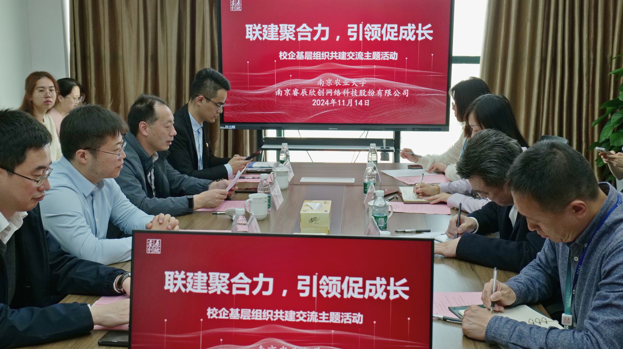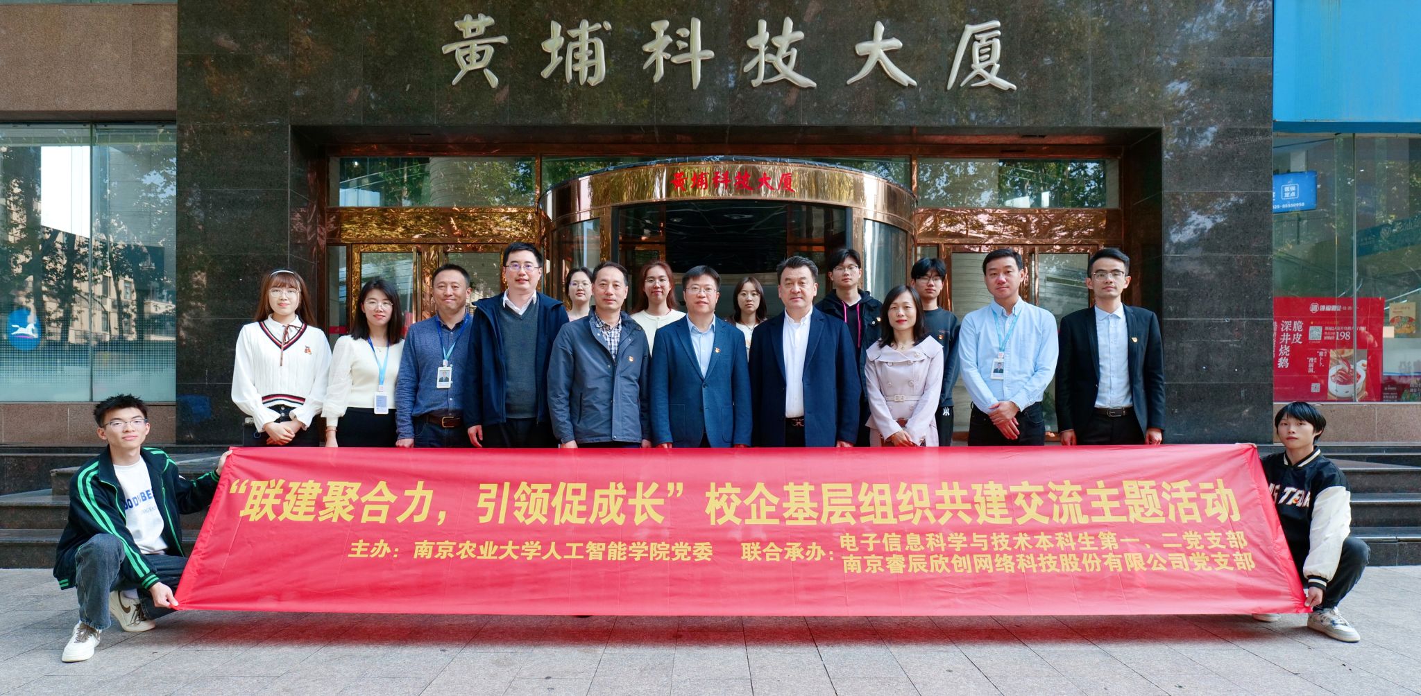 为促进基层党建工作与业务工作深度融合,加强校企合作交流,充分发挥“样板党支部”的基层战斗堡垒作用,11月14日上午,由电子信息科学与技术本科生第一党支部牵头,联合电子信息科学与技术本科生第二党支部、南京睿辰欣创网络科技股份有限公司党支部,共赴南京睿辰欣创网络科技股份有限公司,开展“联建聚合力,引领促成长”校企基层组织共建交流主题活动。