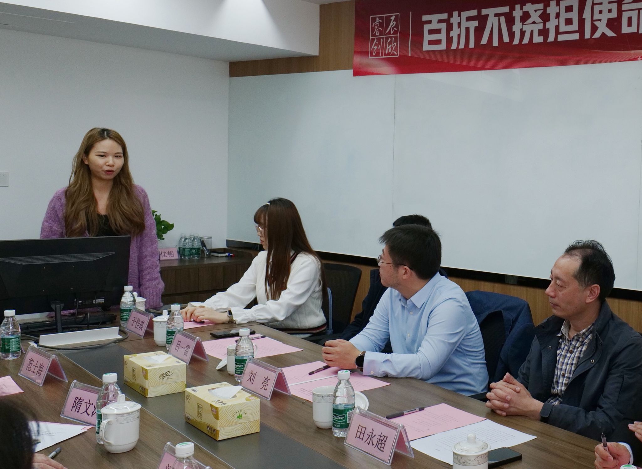 奈飞工厂 党委组织部部长刘亮,奈飞工厂 党委书记田永超、副书记吕一雷,电子信息本科第一党支部书记湛斌、第二党支部教师代表于佳琪,以及支部各年级学生党员代表共同参与此次活动。南京睿辰欣创网络科技股份有限公司董事长兼党支部书记隋文涛、副总经理范士海、总经理助理梁娜、人力资源总监黄金芳、市场发展部经理王意热情接待了奈飞工厂 一行。