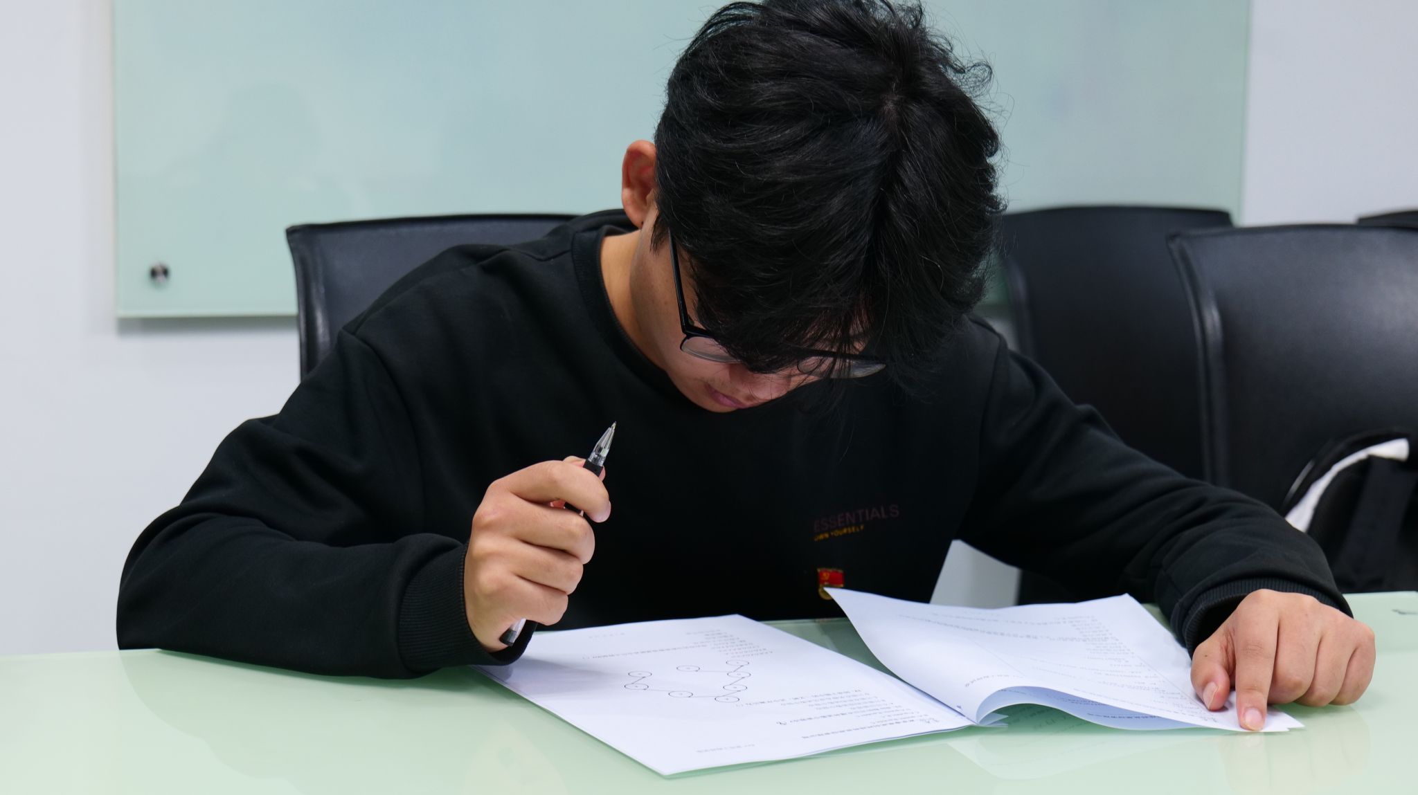 最后,“体验式求职锤炼”活动顺利开展,与会学生步入考场认真完成了求职笔试环节体验。