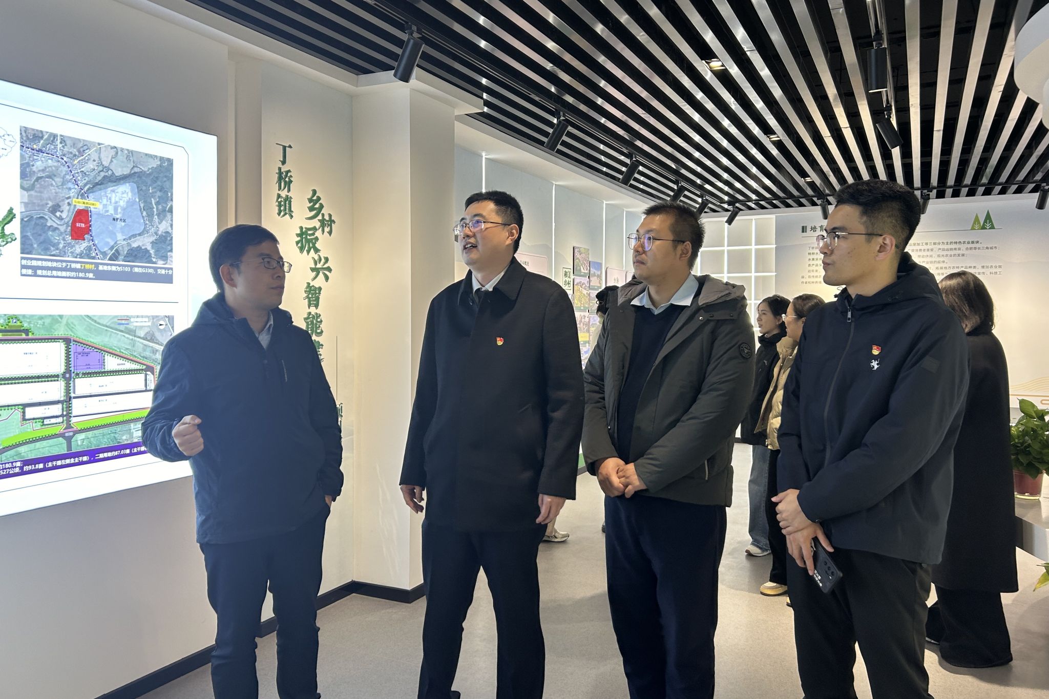 座谈会后,吕一雷一行在丁桥镇镇长程敏等陪同下先后到丁桥镇党群服务中心、镇政府进行实地调研,深入了解丁桥镇在基层党建、红色文化、工业链群、脱贫攻坚、乡村振兴、特色农业等方面的发展历程和突出特点。