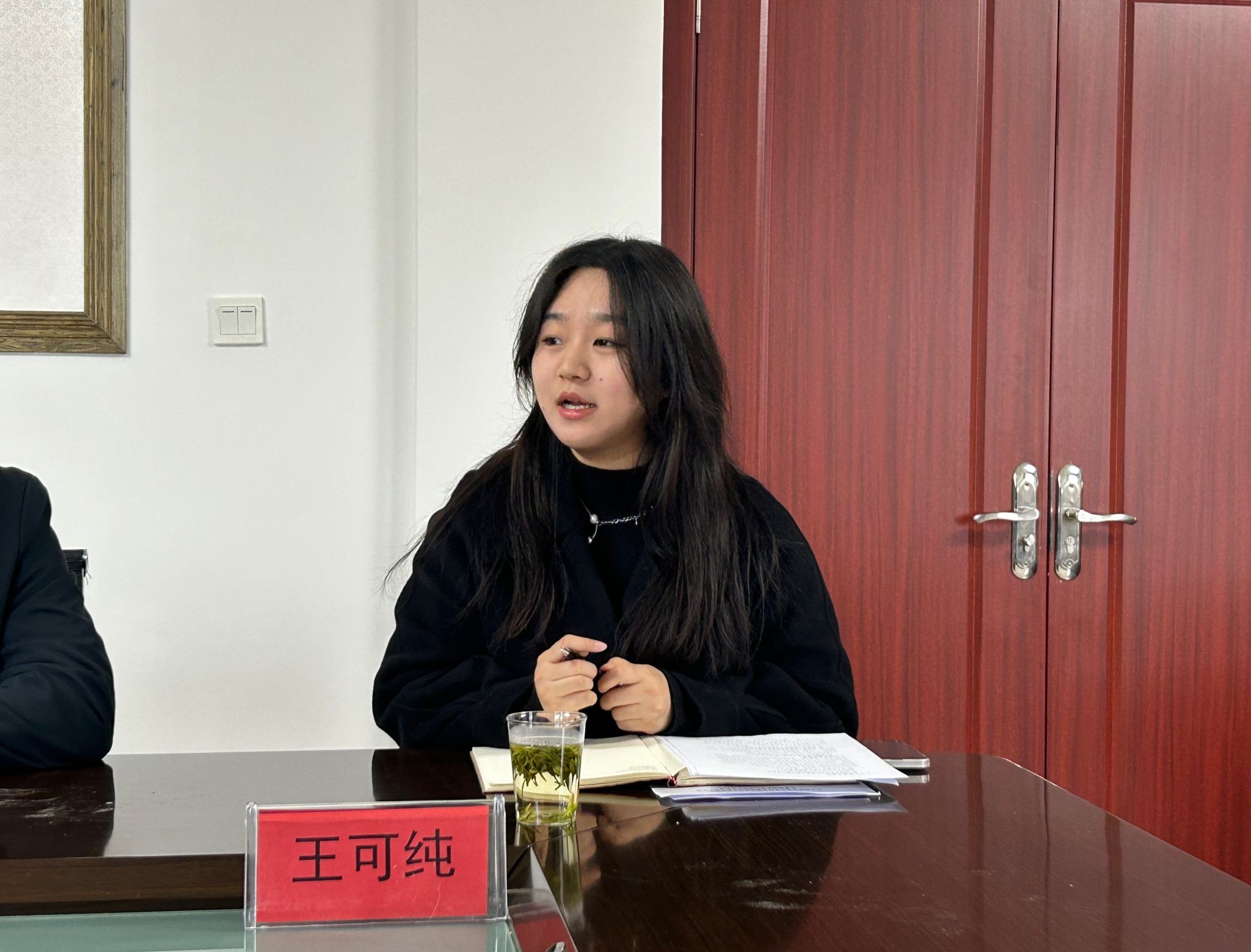座谈会由丁桥镇镇长程敏主持,会上丁桥镇领导程敏、汤双晖、王琳、尹亮分别介绍了王可纯的工作表现,并予以了充分肯定。随后,王可纯汇报了一年多来的工作经历和成长感悟,进一步表达了持续扎根基层的决心和行动,同时对母校的培养以及组织的信任表达了由衷感谢。接着,许雅雅、喻翰治、王佳佳以“同选调生身份、不同到岗年份”的立体视角,分别介绍了与王可纯共事过程中所感受到的做事态度和为人品质。