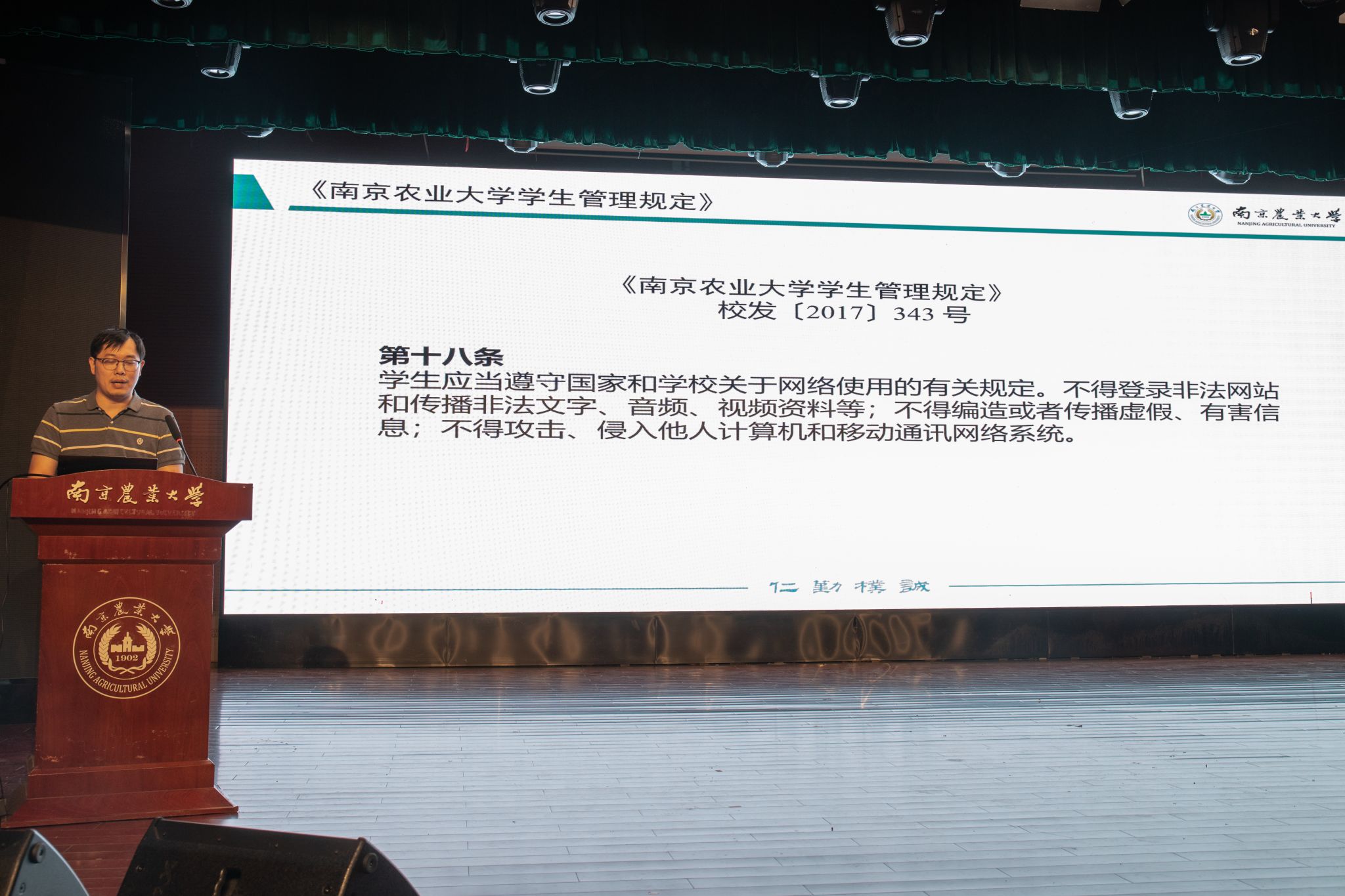 学生工作部(处)教育管理科副科长李迎军老师的案例教学以及学院组织的《学生手册》考试等形式开展。新生们系统学习学术诚信、校园秩序等规则,李迎军强调“坚守初心、勇敢追梦”,帮助新生树立底线思维。