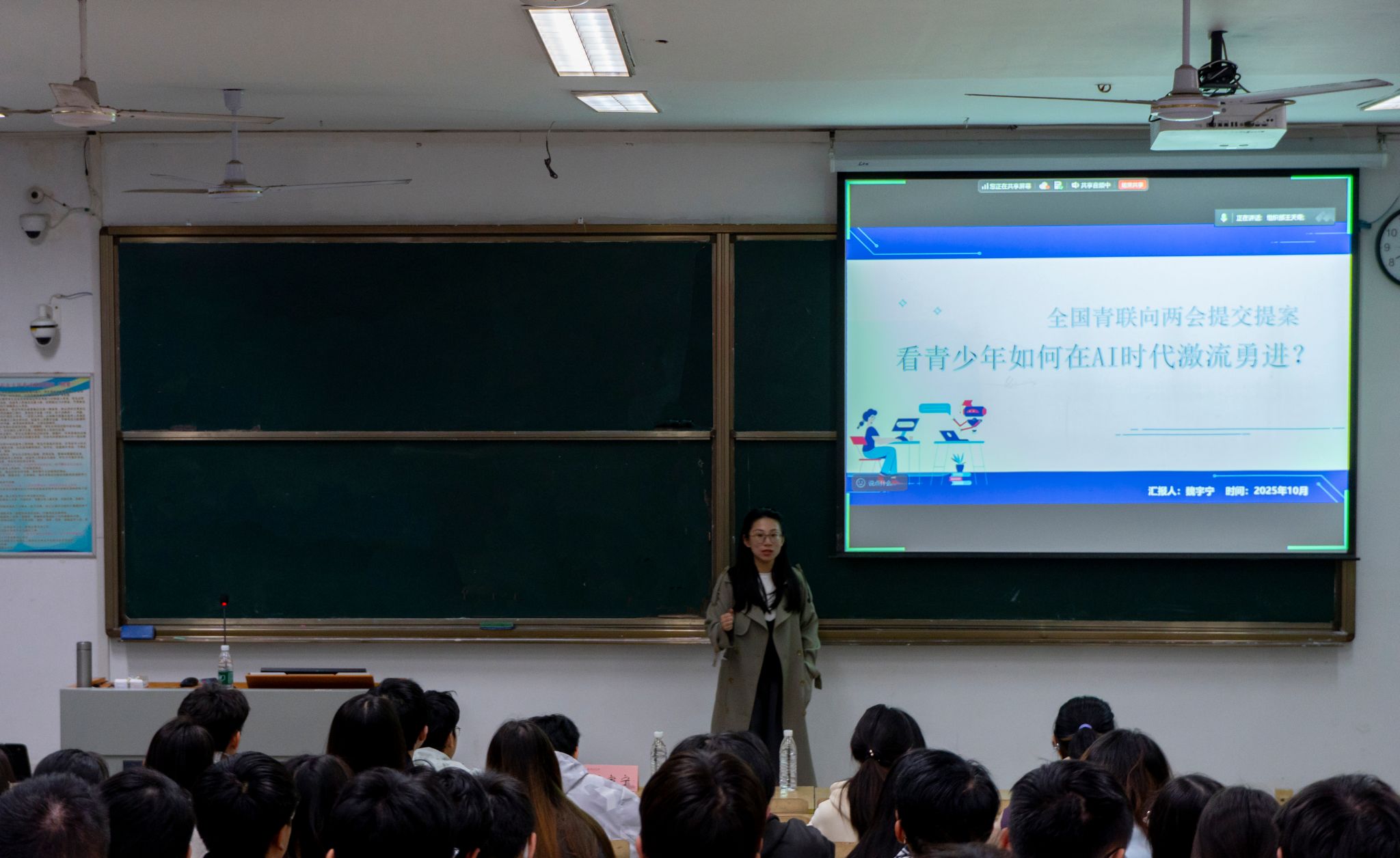 青年讲师团成员魏宇宁围绕全国青联两会提案围绕全国青联两会提案《积极适应新一轮科技革命和产业变革正确运用人工智能赋能青少年发展》,以青年视角解读AI与成长的关联,引导学子争做智能时代“驾驭者”,覆盖全院团学骨干;自动244支部开展“奋进十五五”宣讲;电信232支部邀请优秀党员代表为新生宣讲,组织观看线上精品团课,实现新生支部全覆盖,并提炼“理论+实践”双驱动学习法。